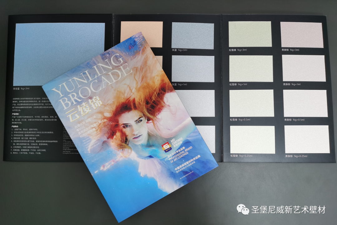 该产品以水性环保高性能乳液为基料,添加天然云母粉,功能填料,多种功能性助剂精制而成,是一款磨砂型带珠光类型的产品,其主要特质表现在有金属磨砂的手感,在灯光或自然光下绽放出璀璨的视觉效果,主要以纯色来诠释它的美与不同之处。